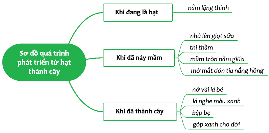 2. Tìm một số hình ảnh, từ ngữ đặc sắc mà tác giả đã sử dụng trong bài thơ để miêu tả quá trình từ hạt thành cây và thể hiện quá trình đó bằng sơ đồ.