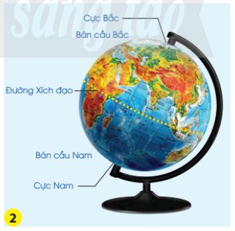 - Quan sát quả địa cầu, xác định được: cực Bắc, cực Nam, đường Xích đạo, bán cầu Bắc, bán cầu Nam.