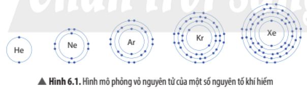 - Vỏ nguyên tử của các nguyên tố khí hiếm đều có 8 electron ở lớp ngoài cùng, riêng Helium $He$ chỉ có 2 electron ở lớp ngoài cùng.