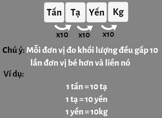 ki-lô-gam, người ta còn dùng những đơn vị: yến, tạ, tấn.
